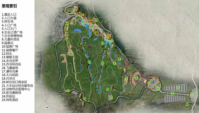 項(xiàng)目概述 洛陽萬安山野生動物園規(guī)劃范圍約110萬平方米,野生動物園項(xiàng)目位于萬安山生態(tài)示范區(qū)寇店區(qū)域,臨近山頂公園。總規(guī)劃分為入口區(qū),溝壑區(qū)和平原區(qū)。 總體構(gòu)思 洛陽萬安山生態(tài)野生動物園總體設(shè)計(jì)思路通過生命的起源為線索,構(gòu)成游覽體驗(yàn)的開端,以故事的形式講述生命歷程的變遷。 入口區(qū)以史前距今46億年前的地球誕生之處開始逐漸進(jìn)入無邊無際的大千世界。以遠(yuǎn)古地球從古至今地質(zhì)的演變及生命的進(jìn)化為設(shè)計(jì)規(guī)劃理念,以一個(gè)大型人工巖石造型的隕石博物館為動物園的標(biāo)志性建筑,也象征著古代生物與近代生物變遷的里程點(diǎn),以此生物進(jìn)入了新生代時(shí)期。由此引導(dǎo)游客進(jìn)入本案的重點(diǎn)展示區(qū)。 項(xiàng)目圖片